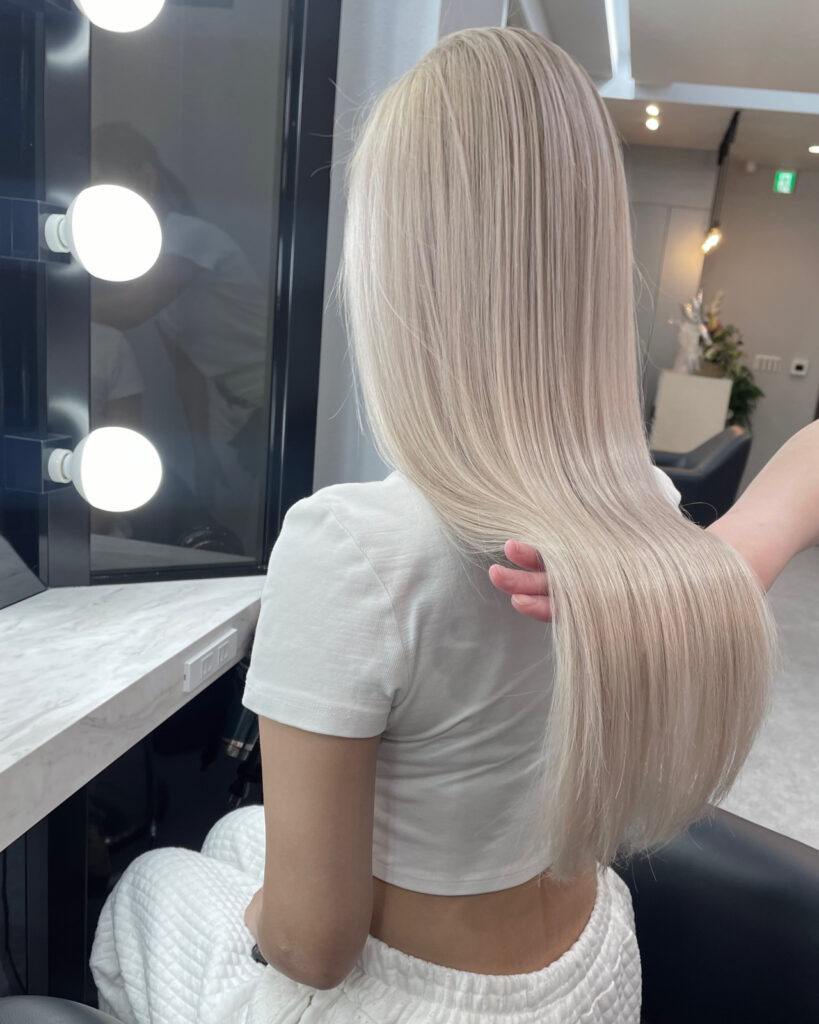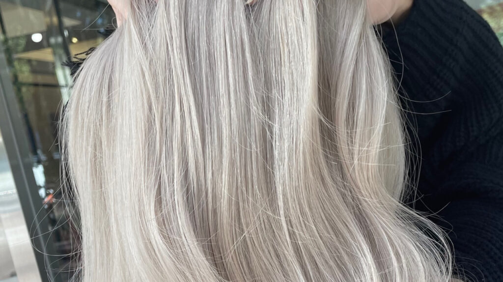 品のあるハイトーンをテーマに、綺麗めヘアーを表現